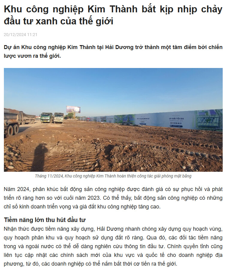 Kim Thanh Industrial Park is honored to be featured in Bao Hai Duong for its alignment with the global green investment trend.