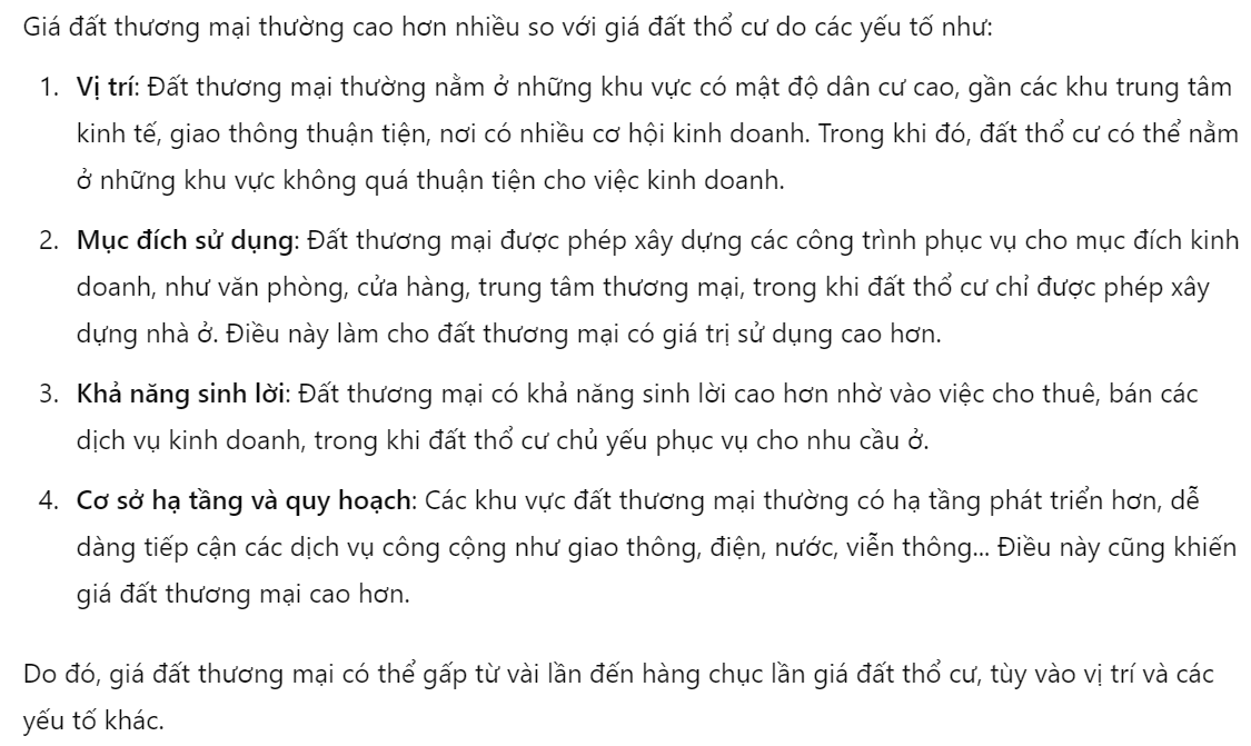 Chưa nói đất thương mại sau này cũng có thể xin chuyển đổi sang đất thổ cư. Giá ban đầu có thể không bằng mức giá nhà thổ cư 100tr/m2 thì ít nó cũng phải 50tr/m2 ![]()