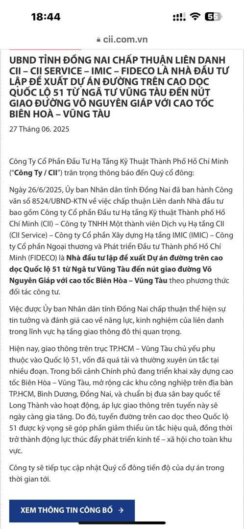 Nhưng cũng phải để ý khả năng triển khai thực tế. CII từng có nhiều dự án chậm tiến độ do vướng thủ tục và nguồn vốn. Hy vọng lần này có chuẩn bị tốt hơn