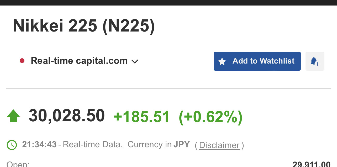 Nikkei đang lên cơn điên, tăng liên tiếp vượt ngưỡng 30k dễ dàng: