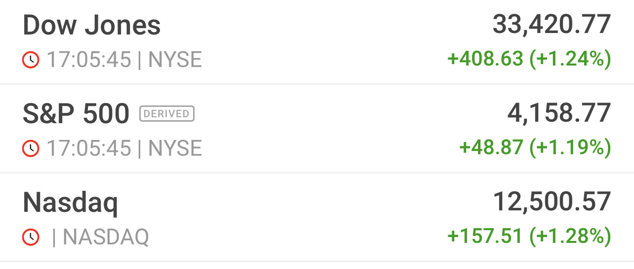 Chứng khoán Mỹ khởi sắc vào ngày thứ Tư (17/5), khi nhà đầu tư hy vọng các nhà lãnh đạo Quốc hội và Tổng thống Mỹ Joe Biden có thể đạt được thoả thuận về vấn đề trần nợ của Mỹ và tránh được một vụ vỡ nợ