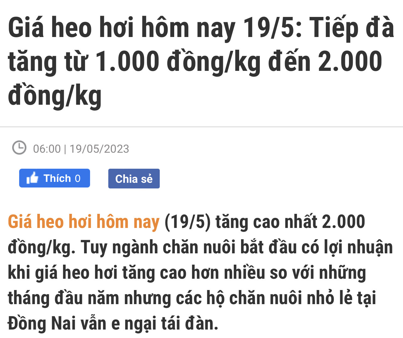 Giá heo hơi đang tăng trở lại và đã tăng khoảng 25-30% so với đầu năm. Vùng giá này đang giúp các DN chăn nuôi Heo có lãi: