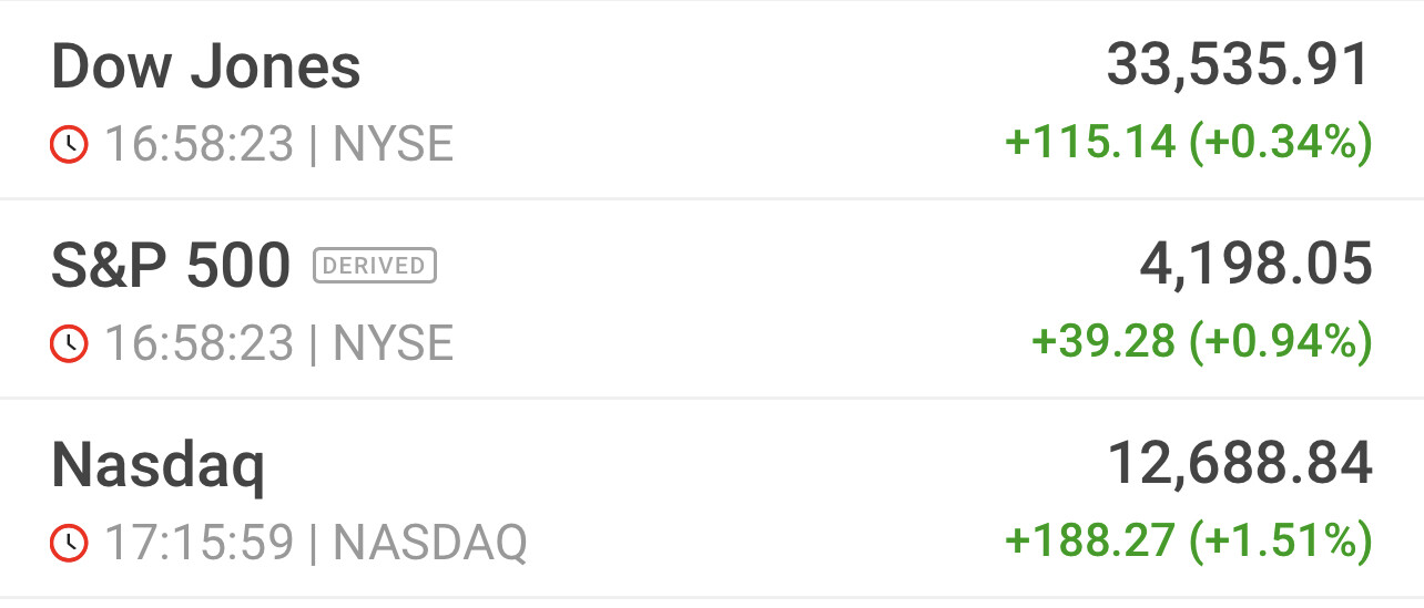 Nasdaq và S&P 500 lên cao nhất kể tùe 8/2022: