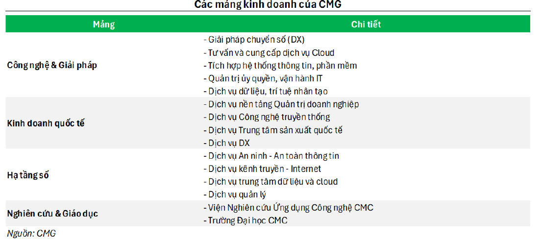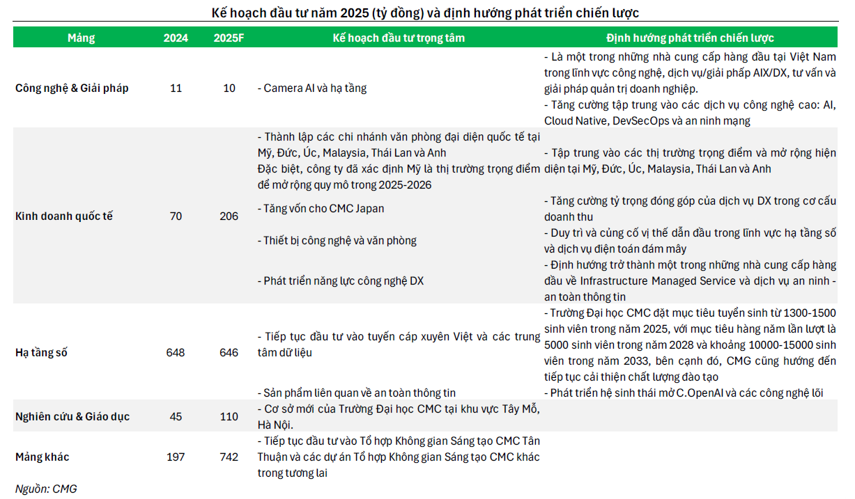 Ban lãnh đạo CMG tiếp tục nhấn mạnh hai trụ cột phát triển chiến lược giai đoạn 2024–2028: “Chuyển đổi AI” và “Go Global”. Trong năm qua, đơn vị CMC TS ghi nhận doanh thu tăng 19% và lợi nhuận tăng 35%, chủ yếu nhờ các hợp đồng chuyển đổi số và AI có quy mô lớn.