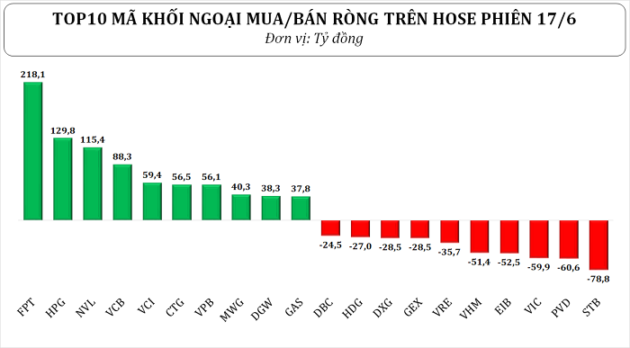 Ở chiều bán ra, STB tiếp tục bị khối ngoại xả mạnh nhất với giá trị bán ròng 78,8 tỷ đồng, nối dài chuỗi ngày chịu áp lực thoái vốn. Theo sát là PVD (60,6 tỷ), VIC (59,9 tỷ), EIB (52,5 tỷ) và VHM (51,4 tỷ đồng). Ngoài ra, nhiều cổ phiếu như VRE, GEX, DXG, HDG, DBC cũng bị bán ròng với giá trị 24 - 52 tỷ đồng.