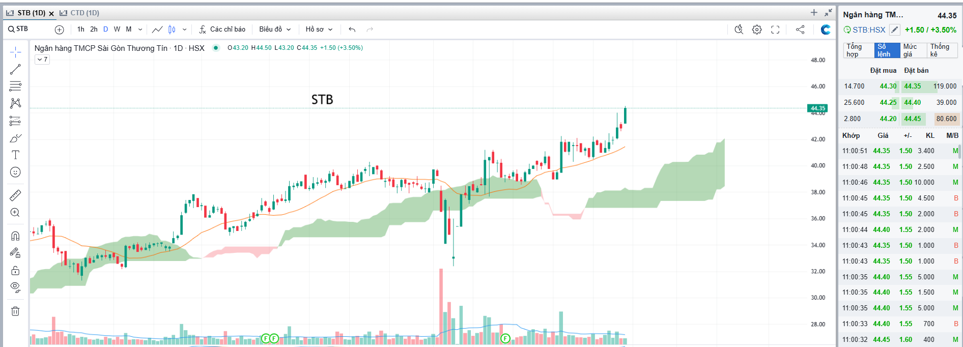 STB càng lên cao vol càng thấp, nghĩa là cổ phiếu còn tăng tiếp.