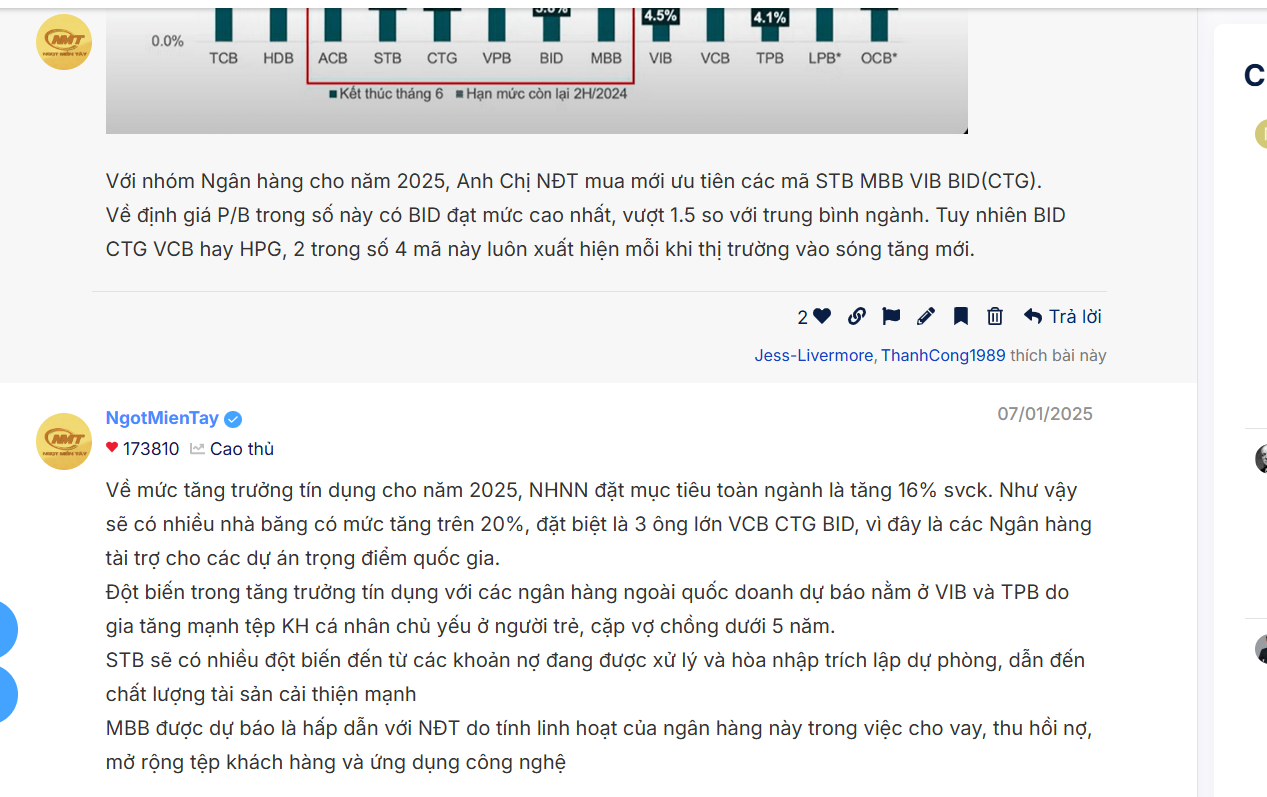 Với nhóm Ngân hàng cho năm 2025, Anh Chị NĐT mua mới ưu tiên các mã STB MBB VIB BID(CTG).