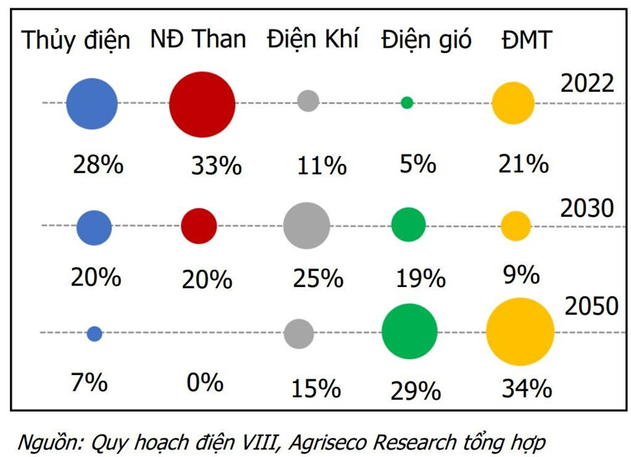 - Quy hoạch điện (PDP) VIII đặt mục tiêu đạt mức phát thải ròng bằng 0 vào năm 2050, cũng như tiếp tục mở rộng công suất điện (đạt trên 150.000 MW vào năm 2030 và đạt gần 600.000 MW vào năm 2050), trong đó năng lượng tái tạo dự kiến sẽ đóng vai trò chính trong quá trình thực hiện lộ trình này.
