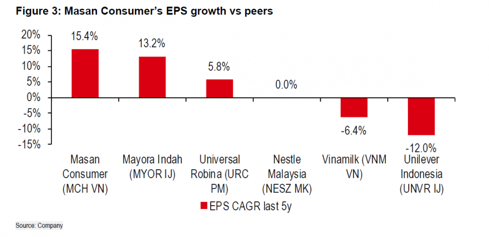 | Tăng trưởng thu nhập trên cổ phiếu MCH so với các đối thủ cùng ngành |