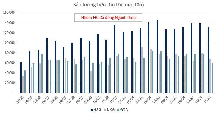 Tháng 11/2024, sản lượng tiêu thụ tôn mạ của top 3 công ty lớn nhất Việt Nam cũng ghi nhận mức sụt giảm so với tháng trước đó.