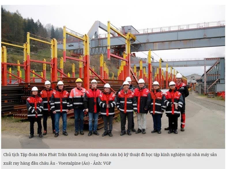 Để có những bước chuẩn bị vững chắc cho việc tham gia dự án đường sắt tốc độ cao, mới đây tháng 10-11/2024, Chủ tịch HĐQT Tập đoàn Hòa Phát Trần Đình Long cùng đội ngũ chuyên gia công nghệ đã trực tiếp đi tìm hiểu thực tế tại nhiều nhà máy sản xuất ray thép hàng đầu thế giới tại châu Âu; tham khảo cách bố trí dây chuyền thiết bị công nghệ cho nhà máy, cách thức vận hành tổ chức sản xuất, quy trình công nghệ sản xuất, quy trình kiểm tra chất lượng xuyên suốt toàn quá trình từ chuẩn bị nguồn nguyên liệu sạch sản xuất từ quặng sắt, tinh luyện chân không tinh chế kim loại có độ sạch cao nhất và khử tạp chất khí có hại, hệ thống kiểm soát chất lượng online, thiết bị UT kiểm tra khuyết tật bên trong ray thép (Ultrasonic testing), thiết bị kiểm tra biên dạng hình học bằng laze (Hiprofile), hệ thống nắn thẳng ray, hệ thống tôi đầu ray trong quá trình sản xuất ray cho đường sắt tốc độ cao giúp đảm bảo chất lượng luôn ở cấp cao nhất.