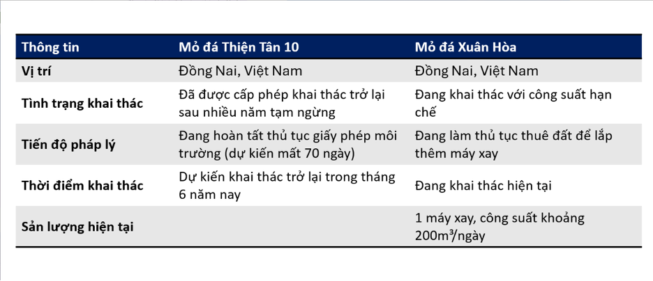Trong ĐHCĐ năm nay, BLĐ doanh nghiệp cho biết công ty đang có 2 mỏ đá: