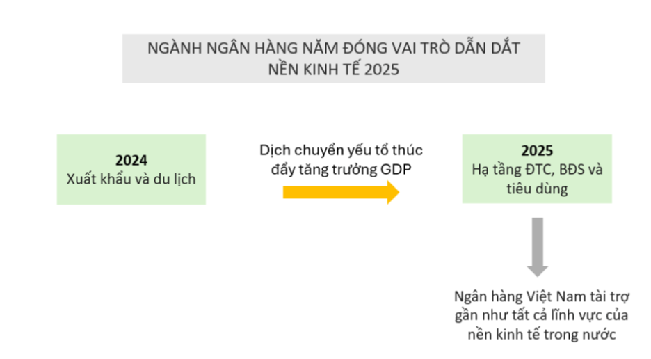 Để tránh bị phụ thuộc vào chính sách thuế quan của Mỹ, ngay từ đầu năm, chính phủ đã đưa ra chỉ đạo dịch chuyển các yếu tố thúc đẩy tăng trưởng GDP của Việt Nam, từ xuất khẩu và du lịch năm 2024 sang tiêu dùng, hạ tầng ĐTC và bất động sản vào năm 2025. Tức tập trung vào phát triển nội tại.