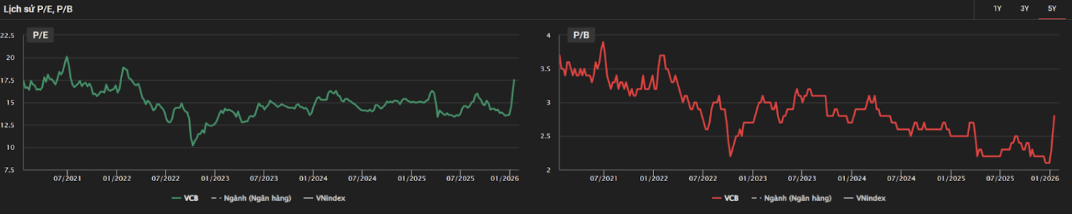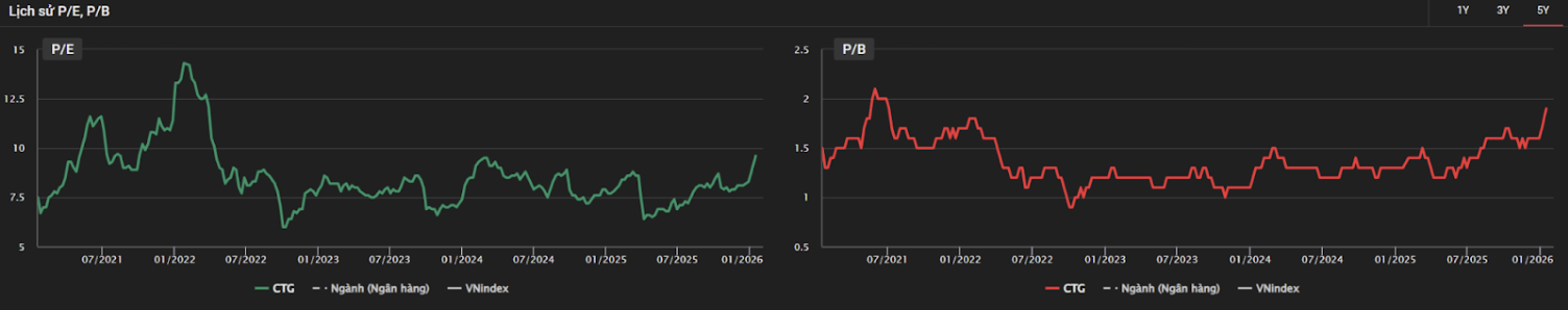 - Đối với VietinBank, ngân hàng này sở hữu tỷ lệ CASA ổn định ở mức cao (24,4%) và áp lực trích lập dự phòng giảm bớt nhờ bộ đệm dự phòng lớn. Tín dụng dự kiến tăng trưởng 17,9% trong năm 2026. Dự phóng tổng thu nhập hoạt động năm 2026 của CTG đạt 106.937 tỷ đồng (+17,6% so với cùng kỳ) và lợi nhuận trước thuế đạt 51.358 tỷ đồng (+19% so với cùng kỳ).