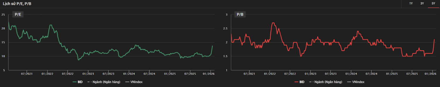 - Đối với BIDV, VCBS đánh giá, luận điểm đầu tư tập trung vào mảng bán lẻ và SME với kỳ vọng tăng trưởng tín dụng đạt 16,2% trong năm 2026. Chất lượng tài sản được cải thiện nhờ đẩy mạnh xử lý nợ xấu, mục tiêu đưa tỷ lệ nợ xấu về mức 1,1%. Dự phóng tổng thu nhập hoạt động năm 2026 của BID đạt 106.277 tỷ đồng (+18% so với cùng kỳ) và lợi nhuận trước thuế đạt 42.076 tỷ đồng (+16,7% so với cùng kỳ).