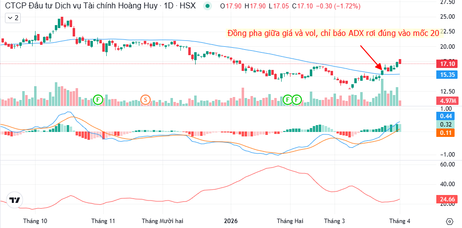 Về mặt kỹ thuật, TCH sau nhịp tăng từ đáy giá 12,800 vnd lên gần 18,000 vnd (gần 40%) tạo hiệu ứng chốt lời đợt 1. Chart W có thể thấy đang ở ngưỡng kháng cự trung hạn (quanh 18). Vậy nếu trading TCH thì nên trade ở giá nào là vị thế tốt nhất ? Theo em thấy chart W đang tạo MACD cắt lên, còn chart D thì MACD đã cắt lên và ADX đang móc ngược lên từ mốc 24 điểm ( ADX mốc lên đúng vào điểm rơi 20 ngày 24.03 - quanh MA 50 ngày, đây là một điểm giải ngân với vị thế cực tốt về giá vốn).