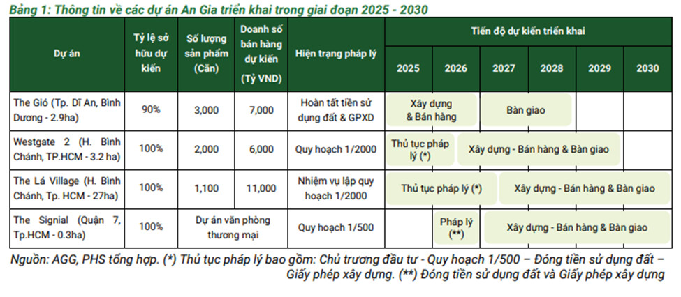 Hiện tại, hai dự án mới của AGG vẫn đang trong quá trình xin ý kiến Sở Xây dựng và chưa có văn bản chấp thuận từ UBND huyện Bình Chánh liên quan đến hạ tầng, quy hoạch, đất đai và định hướng phát triển nhà ở. Dự kiến, chủ trương phát triển NOTM sẽ được thông qua sớm nhất vào quý 3 năm nay, và cần thêm 1–3 năm để hoàn tất thủ tục cùng xây dựng hạ tầng trước khi ra mắt.