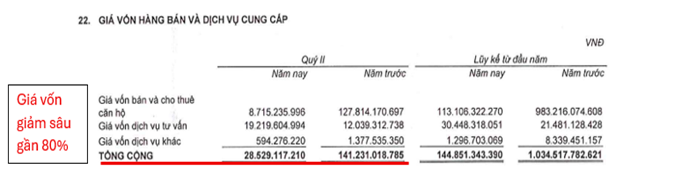 Giá vốn hàng bán quý 2/2025 của AGG giảm sâu.