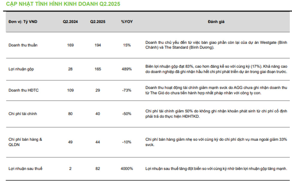 Báo cáo kết quả kinh doanh quý 2/2025 AGG - Nguồn VCBS.