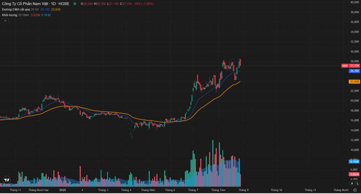 Tiềm năng định giá: Dù giá cổ phiếu đã tăng, nhưng nếu nhìn vào lợi nhuận dự phóng cho năm 2025, chỉ số P/E của ANV vẫn ở mức hấp dẫn, chỉ khoảng 5.2x - 10x. Đây là mức định giá khá thấp so với tốc độ tăng trưởng phi thường của công ty.