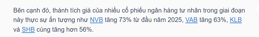 Với nghị quyết 68 về kinh tế tư nhân, thời gian vừa qua các cổ phiếu của nhiều hệ sinh thái tư nhân tiêu biểu là bank cũng đã tăng tốc rất mạnh. Mới nhất là KLB VAB NVB, Thì sớm muộn cũng đến lúc a Tiền thể hiện ABB mà thôi!
