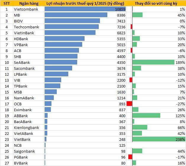 TOP 10 ngân hàng có định giá theo P/B rẻ nhất quý I/2025