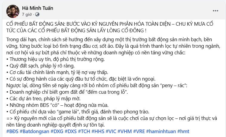 Thời kỳ làm thật, DA thật, giá trị thật. Các cty tài chính lành mạnh, chỉ số FA tốt-> sẽ ngày càng phát triển