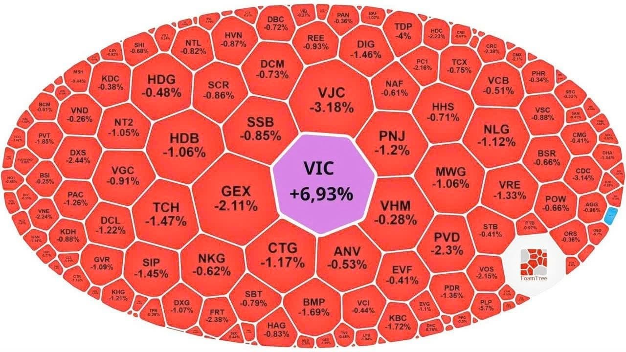 Chỉ số lên bằng gì, thì có thể điều chỉnh bằng chính cổ phiếu đấy. Nếu VIC quay đầu rơi mạnh, chắc chắn sẽ là thảm họa đối với chỉ số chung.