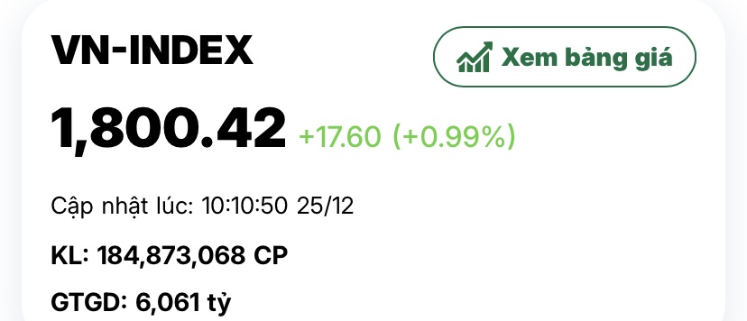 - Tính đến 24/12/2025, VN-Index ~1,783 điểm (cao hơn ~40% so với cùng kỳ 2024), và đã ghi nhận đỉnh lịch sử quanh 1,795 điểm trong tháng 10/2025—cho thấy xu hướng tăng mạnh, thanh khoản duy trì ở mức cao.