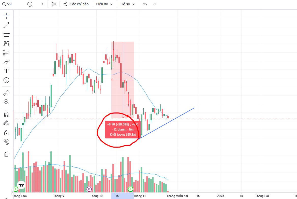 1. Dạng đang chiết khấu 20%** từ đỉnh mà đại diện là SSI