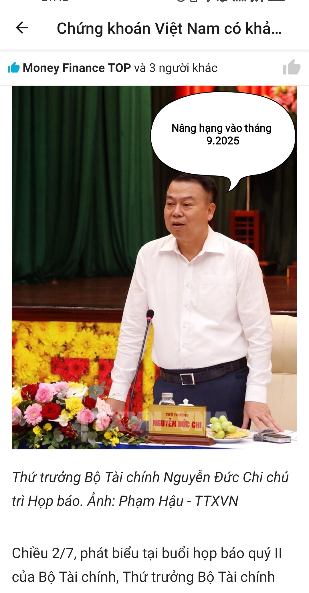 Nay dòng chứng đc kéo có lẽ (vì nhiều lần trc cg đã có tin nâng hạng này mà chứng vẫn xịt) là nhờ tin này + rumor 7/7 Mỹ công nhận VN là kt thị trường đó a.