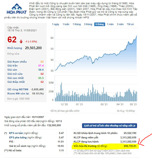 Ghi chú: Vốn hóa = (giá của 1 cổ phiếu hiện tại) x (số lượng cổ phiếu đang lưu hành)