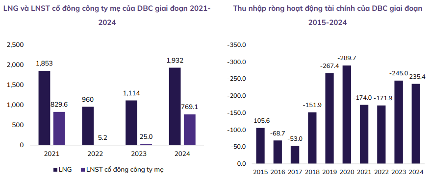 Nhờ những yếu tố trên, lợi nhuận sau thuế (LNST) thuộc về cổ đông công ty mẹ trong quý 4/2024 đạt 239 tỷ đồng, cao gấp gần 40 lần so với cùng kỳ năm trước. Đây là một kết quả kinh doanh đầy ấn tượng, cho thấy sự phục hồi mạnh mẽ và tiềm năng tăng trưởng của DBC trong thời gian tới.