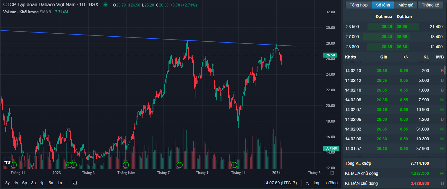 Con gái chủ tịch bán xong 1 triệu DBC. Cổ phiếu quay đầu tăng mạnh. Con xếp cũng bị hớ. Lái đánh khét lẹt Con gái Chủ tịch HĐQT Dabaco bán xong 1 triệu cổ phiếu, DBC bật tăng mạnh
