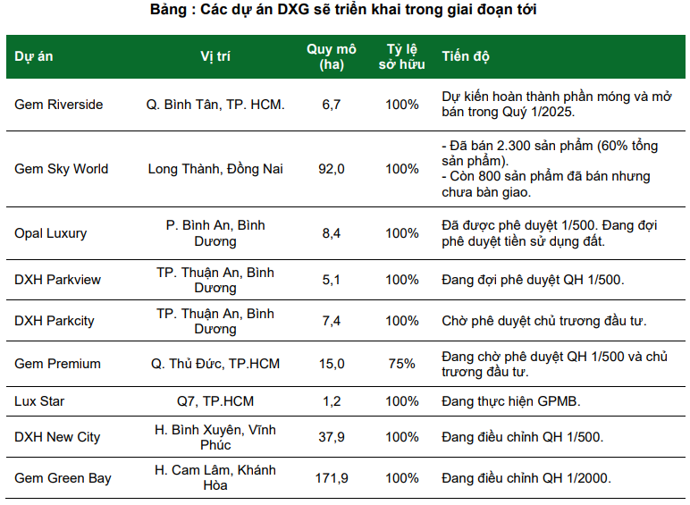 - Ba dự án Opal Luxury (8,4 ha, P. Bình An), DXH Parkview (5,1 ha) và DXH Parkcity (7,4 ha) của DXG tại Bình Dương sẽ được hưởng lợi toàn diện từ làn sóng sát nhập tỉnh: đầu tiên, giá đất nền Bình Dương đã được HĐND điều chỉnh tăng 30–80% và đạt đỉnh 52,16 triệu VND/m² tại các khu trung tâm, giúp định giá lại quỹ đất các dự án này ngay khi công bố ; thứ hai, với tỷ suất nhập cư lên tới 26,4% và mức đô thị hóa 84%, nguồn cầu căn hộ và đất nền tăng vọt sẽ đẩy tỷ lệ hấp thụ – từng ở mức 0,8% tại một số phân khúc – tiến về ngưỡng 30–45% chung toàn thị trường ; thứ ba, GRDP tỉnh tăng 5,97% cùng GRDP bình quân đầu người 172 triệu VND, cộng thêm dòng vốn FDI hơn 41 tỷ USD, tạo nền tảng tài chính vững chắc cho khách hàng và nhà đầu tư mua sản phẩm của DXG ; cuối cùng, sự liên kết hạ tầng giao thông – từ cao tốc đến Metro – được đẩy nhanh thông qua cơ chế liên tỉnh sẽ gia tăng tính kết nối với TP HCM, kéo theo hiệu ứng “lan tỏa” giá trị và khả năng thanh khoản cho Opal Luxury, Parkview, Parkcity trong giai đoạn 2025–2026.