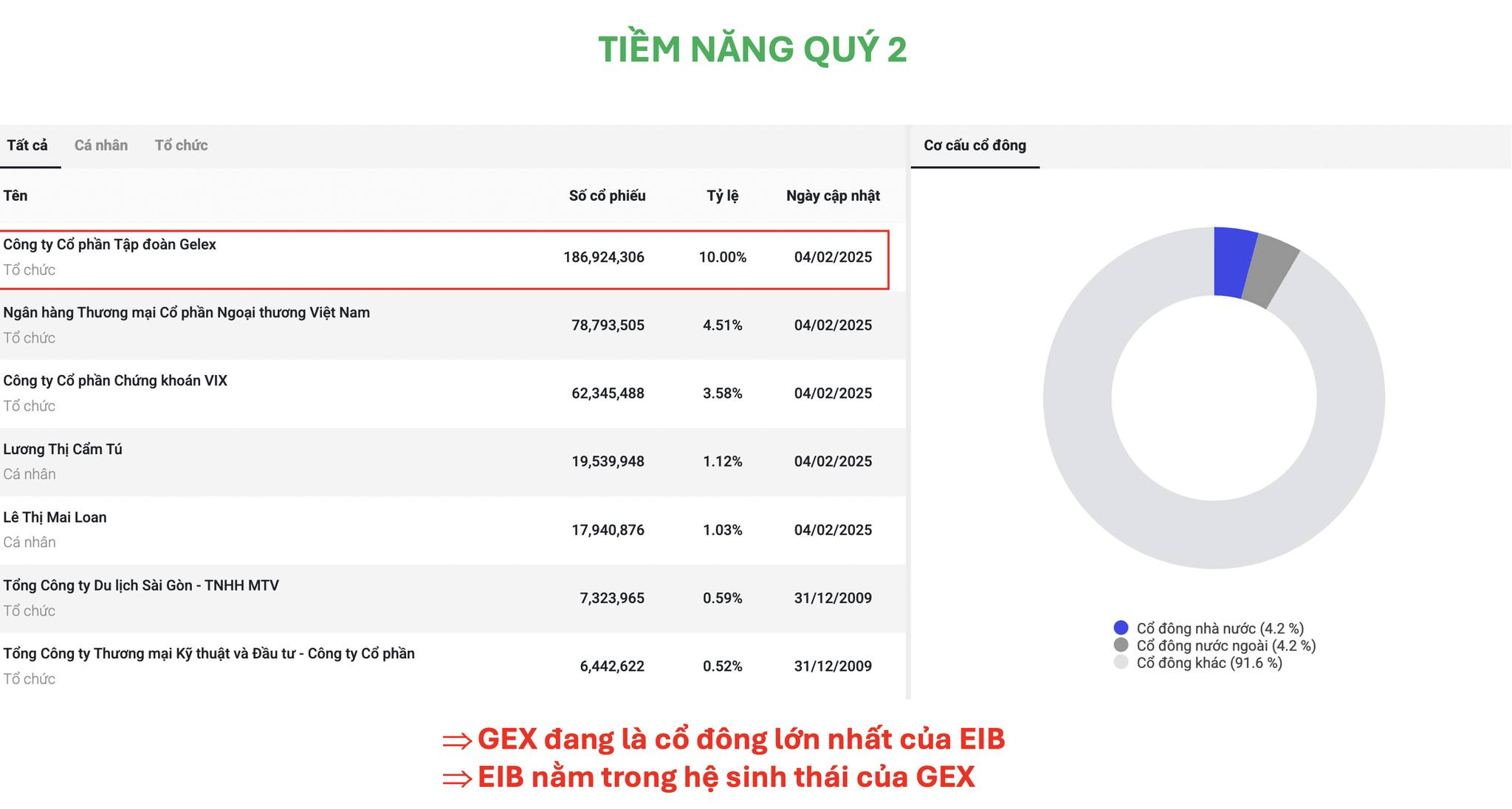GEX là cổ đông lớn, có ảnh hưởng mạnh đến định hướng hoạt động của EIB