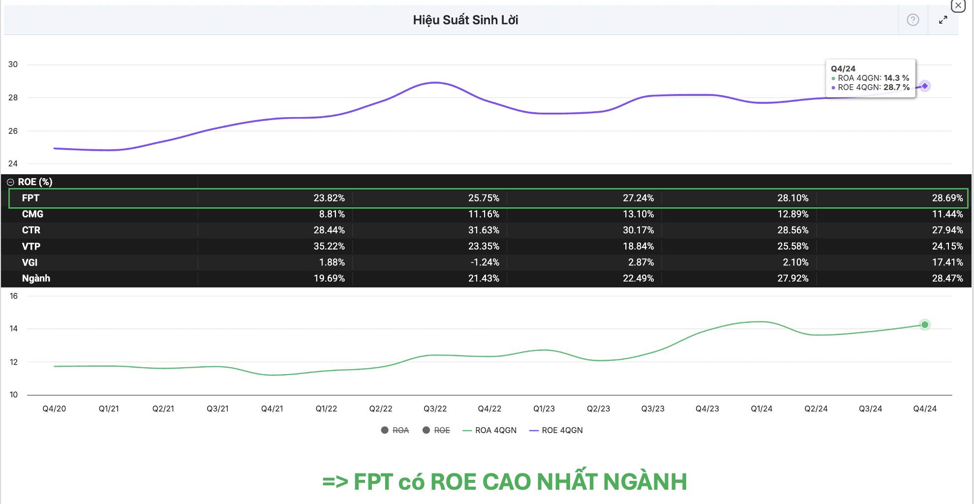 ROE ~28%, biên lợi nhuận ròng ~15%