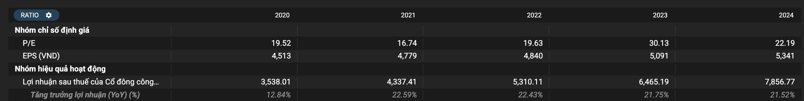 EPS vẫn tiếp tục tăng trưởng đều