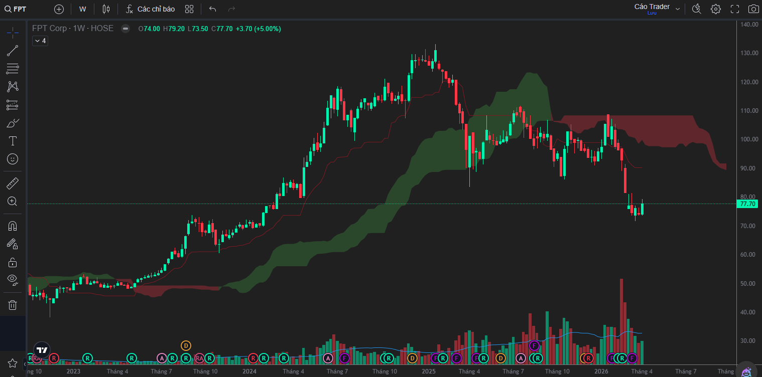 Dựa trên các yếu tố như kênh giá, hệ thống Ichimoku, khối lượng giao dịch và cấu trúc đỉnh – đáy, bài viết dưới đây sẽ phân tích chi tiết bức tranh kỹ thuật của cổ phiếu FPT trên khung tuần, từ đó đưa ra những góc nhìn tham khảo cho nhà đầu tư trong quá trình theo dõi và xây dựng chiến lược giao dịch.