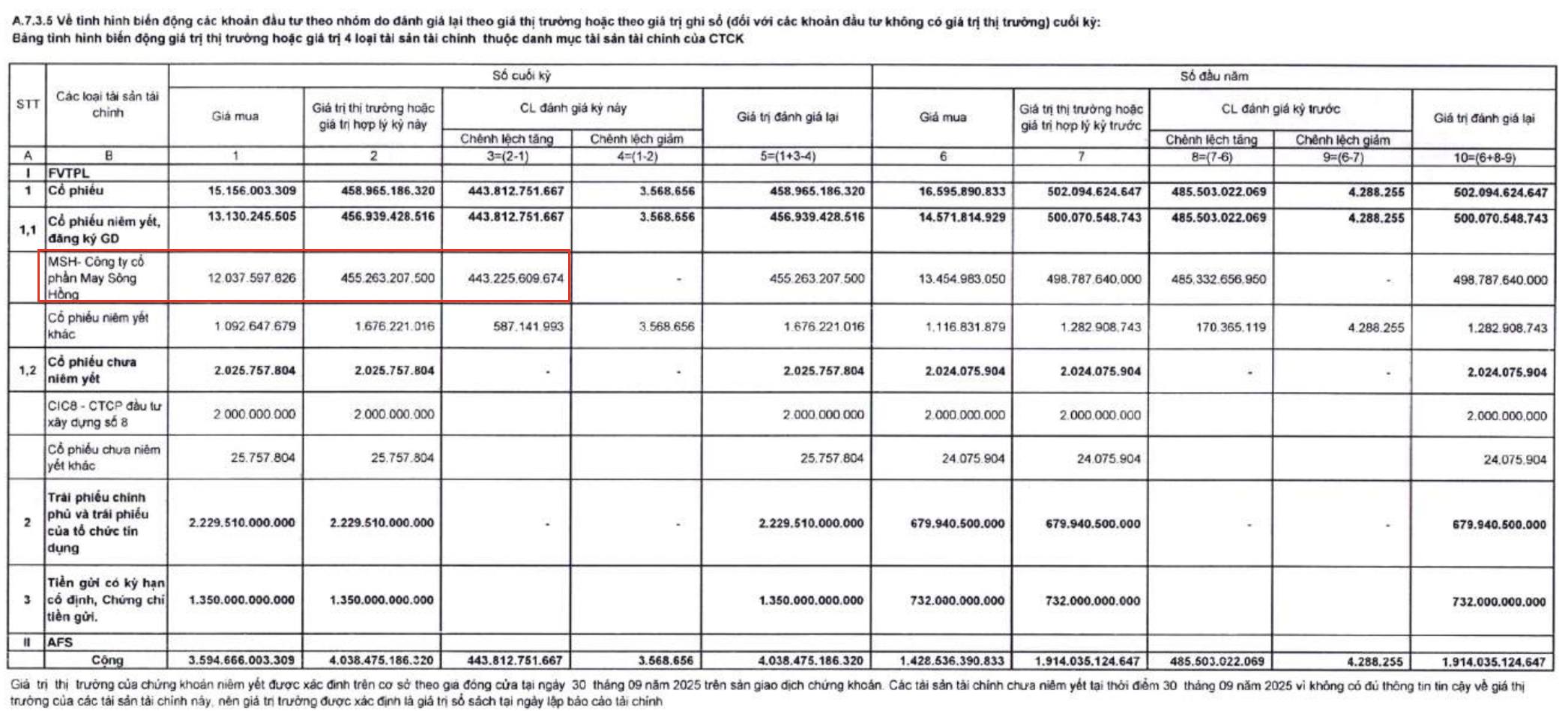 FTS hiện nắm tỷ trọng rất lớn cổ phiếu May Sông Hồng (MSH) trong danh mục tự doanh.