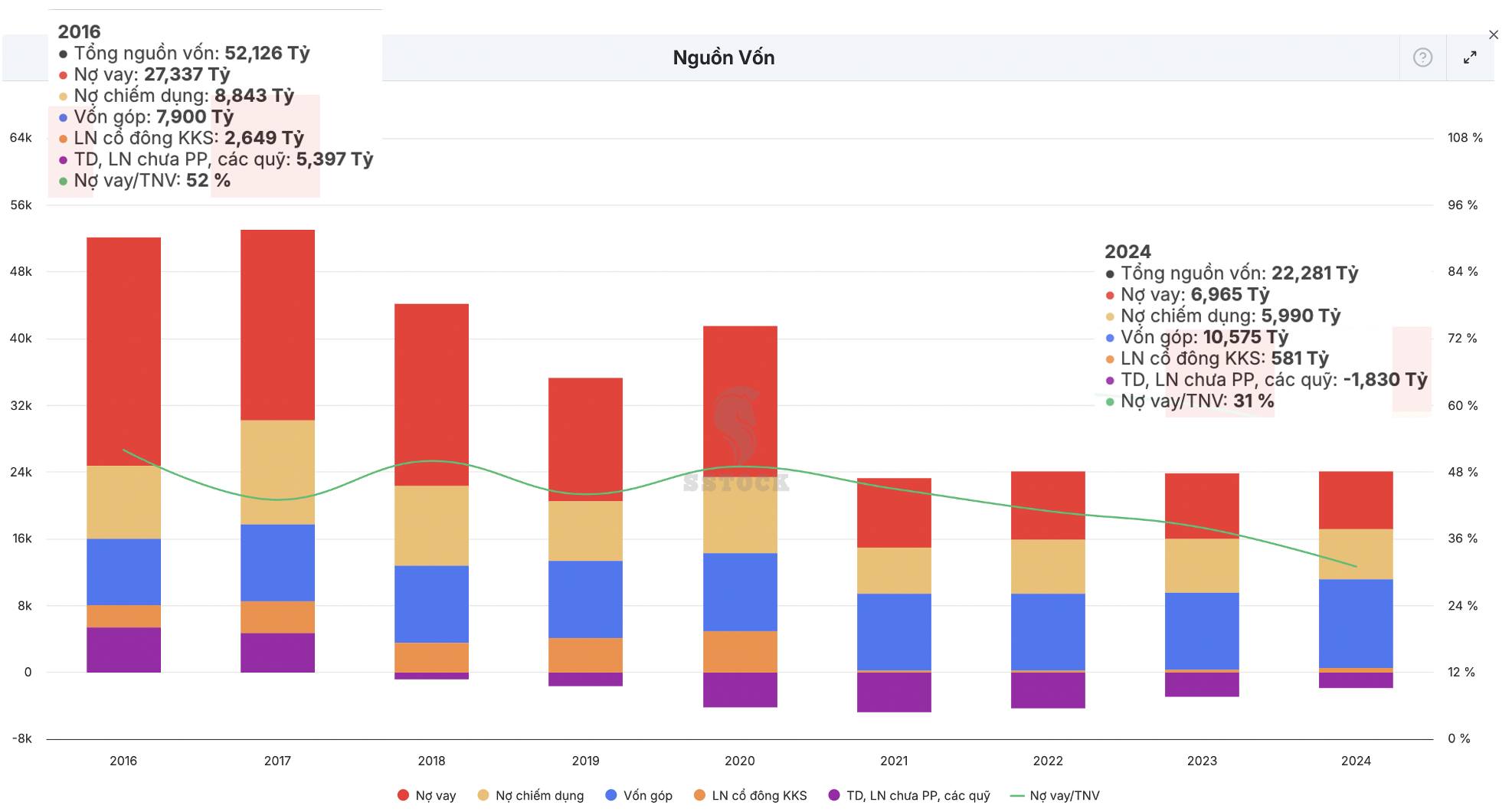 Tỷ lệ nợ/vốn chủ sở hữu cải thiện rõ rệt