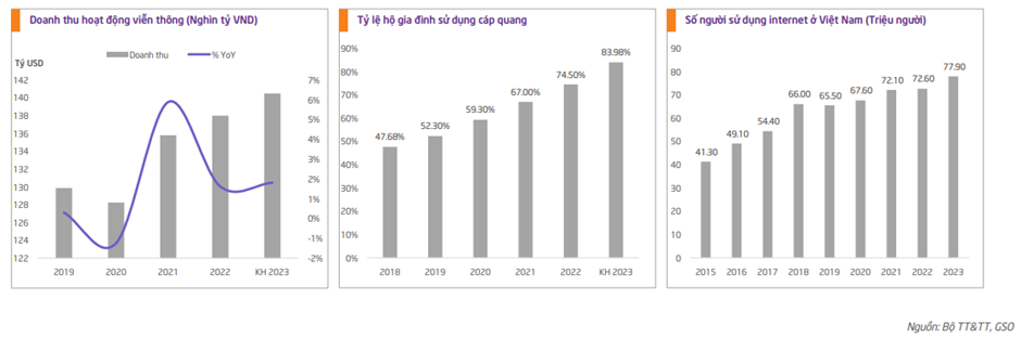 Mặc dù doanh thu toàn ngành Thông tin & Truyền thông giảm 8.66% YoY trong 6 tháng đầu năm 2023 nhưng tính riêng lĩnh vực truyền thông vẫn tăng trưởng so với cùng kỳ 2022. Cụ thể, doanh thu dịch vụ viễn thông ước đạt 74,473 tỷ đồng, tăng 7.9% so với cùng kỳ, đạt 53% kế hoạch năm.