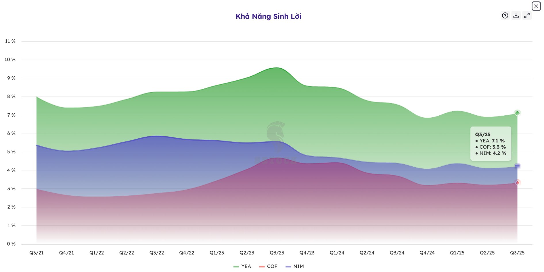 • Sau giai đoạn co lại trong Q1–Q2, NIM của MBB đã bắt đầu ổn định và nhích nhẹ trong Q3.