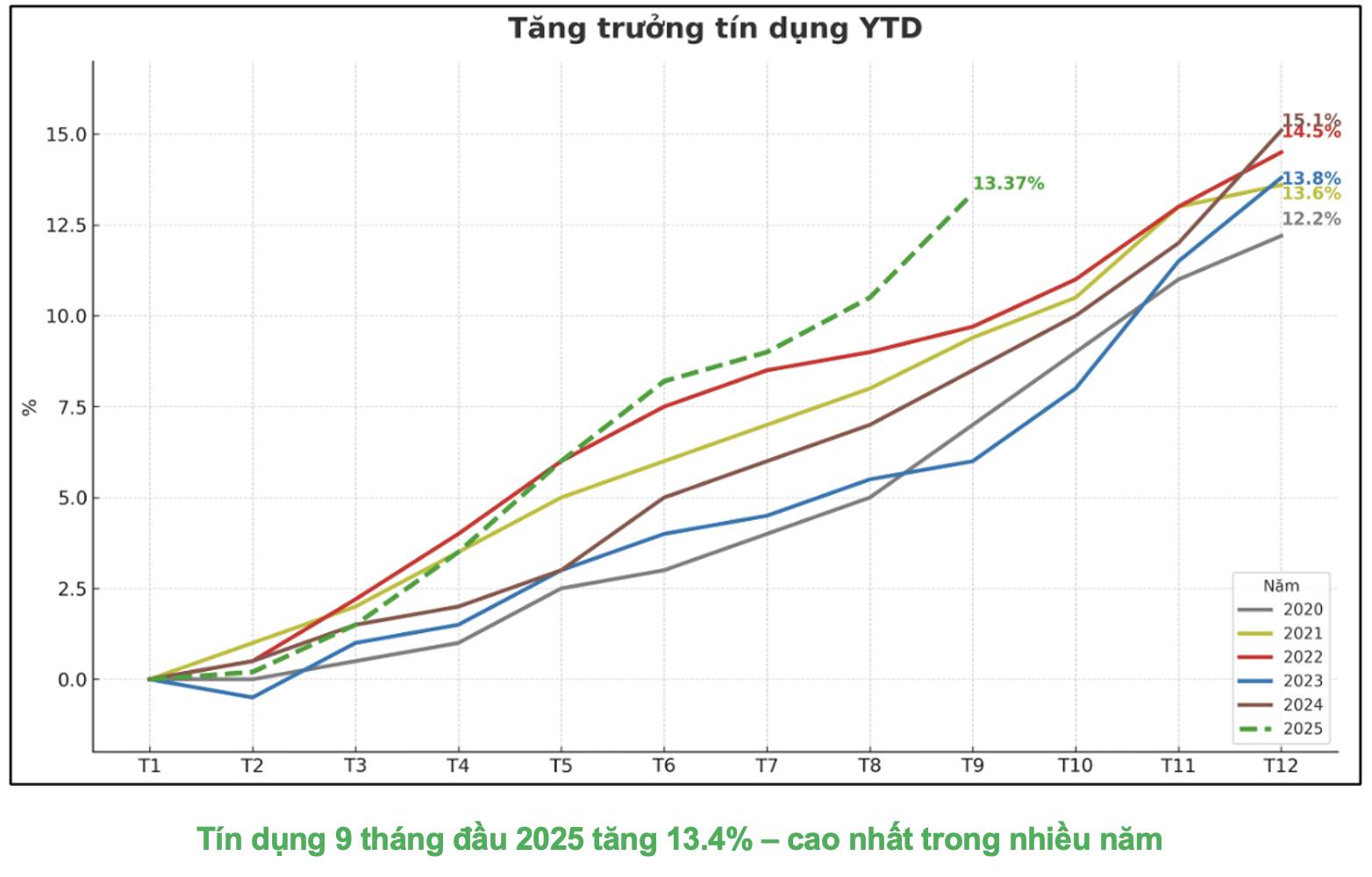 • Chuẩn bị cho một năm 2026 đầy tham vọng, khi kinh tế dự kiến tăng trưởng >10% → kéo theo yêu cầu tín dụng phải tăng tối thiểu 20%.
