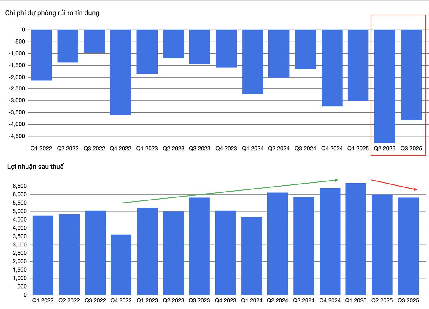 Nghĩa là: lợi nhuận giảm không phải do kinh doanh yếu, mà do ngân hàng CHỦ ĐỘNG tăng bộ đệm an toàn.