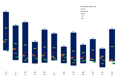 Sức hút của nhóm cổ phiếu ngân hàng được giữ nhịp không chỉ ở vai trò dẫn dắt thị trường tích cực trong tháng đầu năm, còn là triển vọng tăng trưởng tín dụng 2025 và câu chuyện riêng ở một số ngân hàng. Xét về định giá P/B, hiện nhóm cổ phiếu ngân hàng đang ở vùng hấp dẫn để đầu tư.