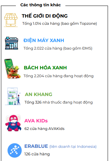- Kết quả 8 tháng: Hai chuỗi bán lẻ đạt 67.000 tỷ đồng doanh thu, tăng 14% so với cùng kỳ, nhờ doanh thu cửa hàng hiện hữu tăng 15%, dù số cửa hàng bình quân giảm >150.
