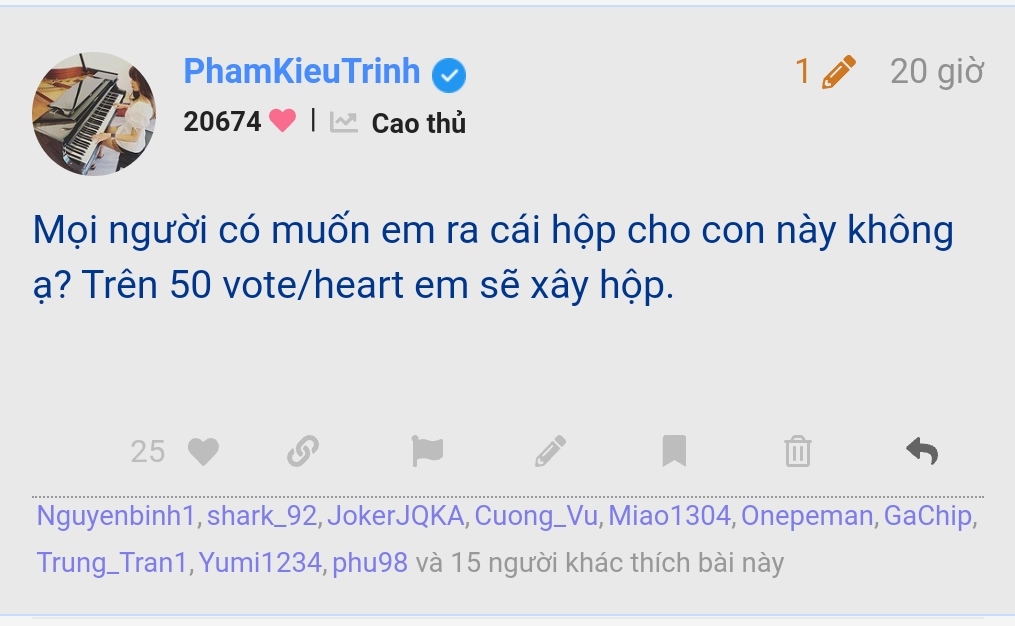 Cái này khó lắm bác ơi mà chỉ có 25 vote thôi nên em cho qua rồi.