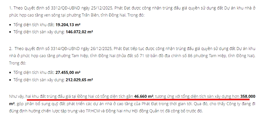 Tổng cộng, Phát Đạt sở hữu hơn 6.200 ha quỹ đất, trong đó 500 ha tại tam giác TP.HCM, Bình Dương, Bà Rịa-Vũng Tàu.