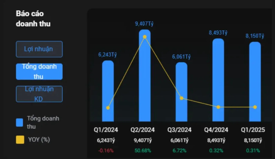 Doanh thu Q1/2025 đạt 8.150 tỷ đồng (+30% svck) và đạt 21% kế hoạch cả năm